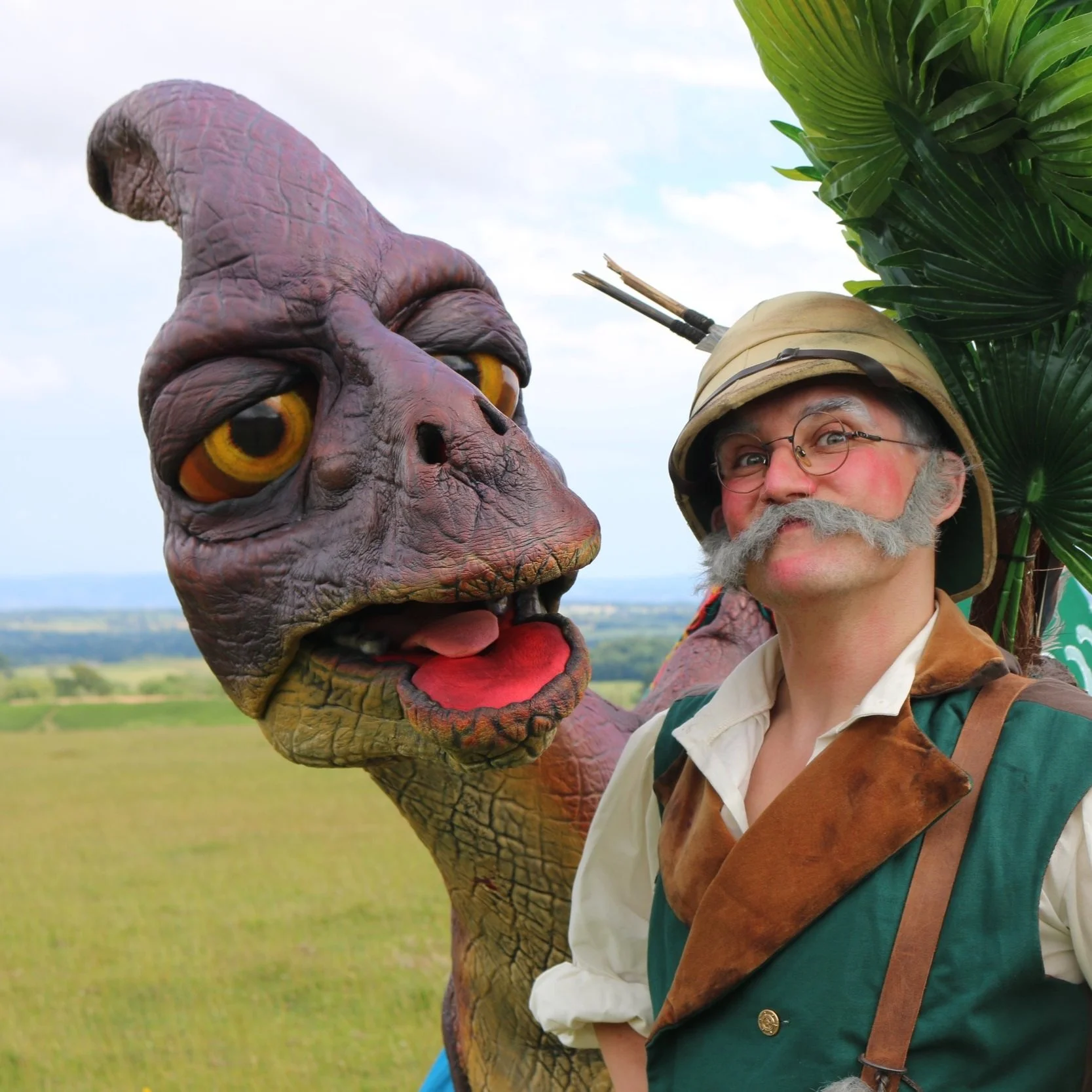 Hosted by the legendary explorer Miss Bonny Voyage or her uncle, the infamous adventurer Captain John Voyage, we invite you to discover the last living dinosaur, Odysseia the Parasaurolophus. We know that’s a mouthful but as Old Captain John would always tell us, “Try saying it when you’re three days into the Amazon, soaked to the bone with tropical rain and suffering from Dengue fever!” Torn from the pages of a Boy's Own adventure and shipwrecked on our shores, the explorers need your help as they study a ruined map in an attempt to return the beast to the late Cretaceous period of The Land that Time Forgot. Failing that, simply offer a friendly hand to Odysseia and help her understand that not all humans are barbaric, savage cavepeople. Whether you join in on the quest or pose for a selfie, you are sure to have a Jurassic lark!